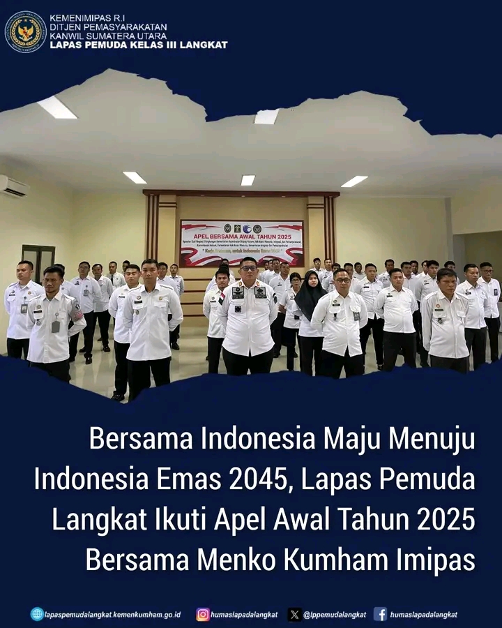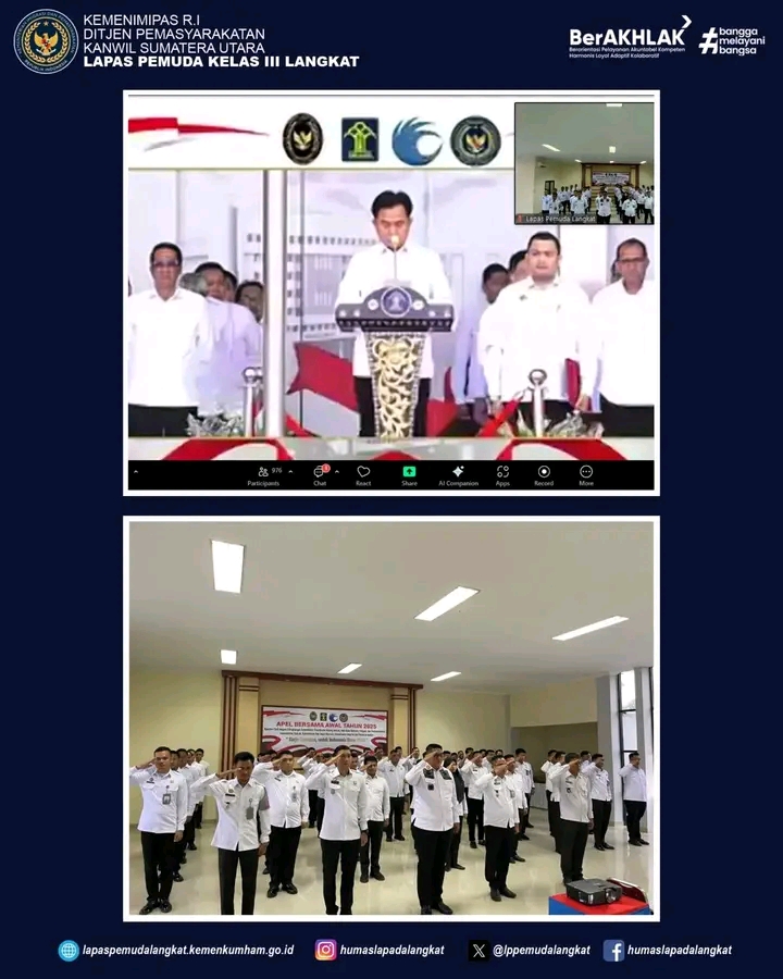 Bersama Indonesia Maju Menuju Indonesia Emas 2045, Lapas Pemuda Langkat Ikuti Apel Awal Tahun 2025 Bersama Menko Kumham Imipas