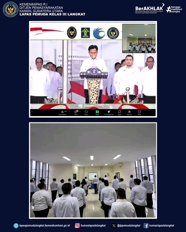TIMELINES INEWS INVESTIGASI, Lapas Pemuda Langkat Dalam rangka menyambut Tahun Baru 2025, Kepala Lembaga Pemasyarakatan, Raymon Andika Girsang bersama jajaran pegawai Lapas Pemuda Langkat mengikuti Apel Awal Tahun 2025 bersama Menteri Koordinator Hukum, Hak Asasi Manusia, Imigrasi dan Pemasyarakatan diikuti seluruh Aparatur Sipil Negara (ASN) di lingkungan kementerian tersebut secara virtual, Senin, (06/01/2025).