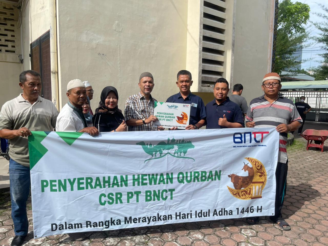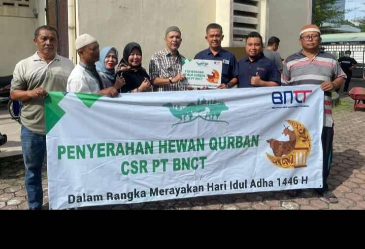 TIMELINES INEWS INVESTIGASI, Belawan, 11 Dzulhijjah 1446 H Dalam semangat kebersamaan dan kepedulian sosial di Hari Raya Iduladha, PT Belawan New Container Terminal (BNCT) berkolaborasi dengan Persatuan Wartawan Indonesia (PWI) Provinsi Sumatera Utara menyalurkan bantuan hewan kurban kepada masyarakat sekitar kantor PWI Sumut, Jalan Adinegoro, Medan.