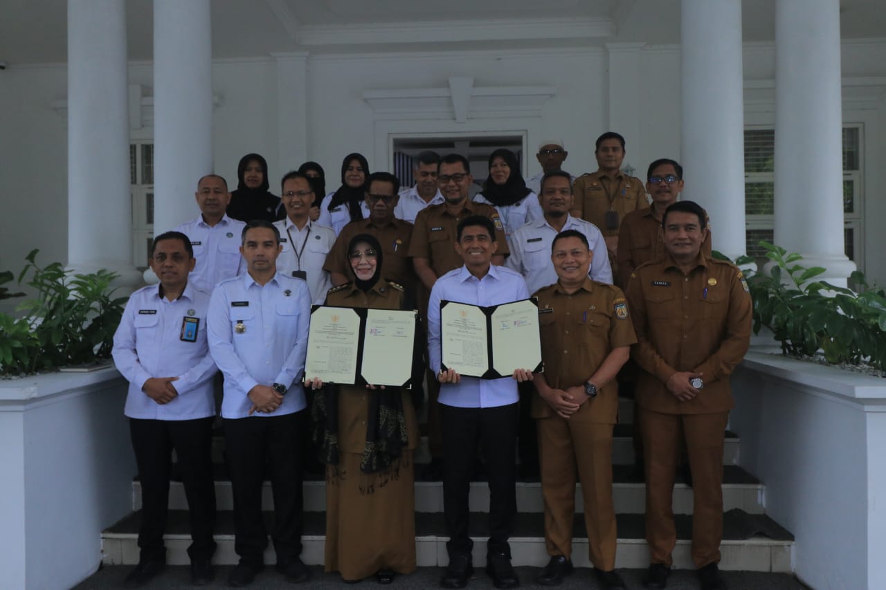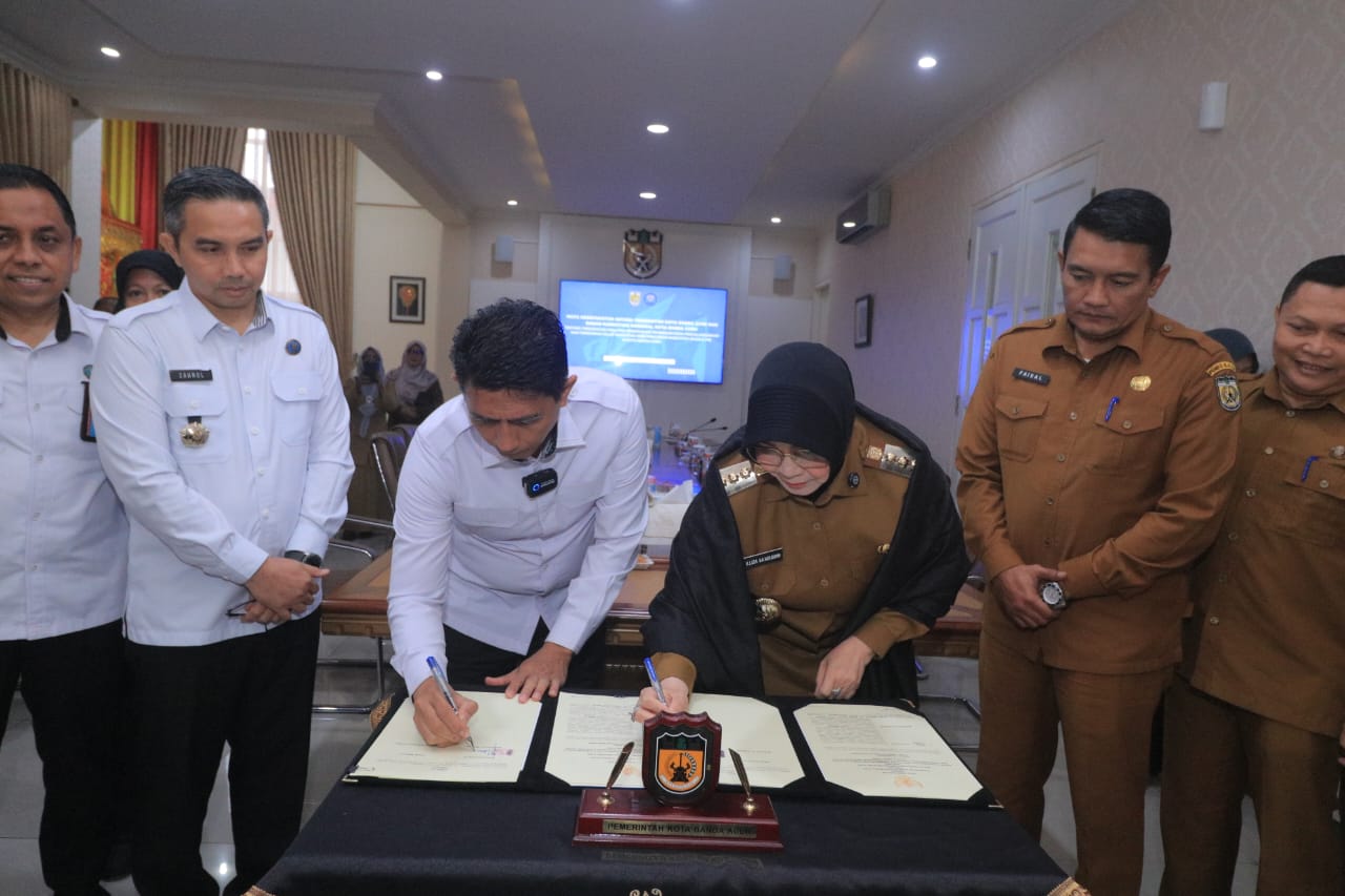TLII>>Banda Aceh – Badan Narkotika Nasional Provinsi (BNNP) Aceh bersama Pemerintah Kota Banda Aceh menandatangani nota kesepahaman (MoU) terkait Percepatan Fasilitasi Pencegahan, Pemberantasan Penyalahgunaan, dan Peredaran Gelap Narkotika serta Prekursor Narkotika (P4GN), Senin (26/5/2025). Penandatanganan berlangsung di Pendopo Wali Kota Banda Aceh.