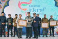 Walikota Langsa Jeffry Sentana S Putra menerima penghargaan Serambi Ekonomi Kreatif (Ekraf) Award 2025 di Hall The Pade Hotel Banda Aceh (Foto : Istimewa)…