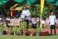 Kepala Kantor Kemenag Aceh Besar H Saifuddin SE bertindak sebagai inspektur upacara peringatan Hari Amal Bakti (HAB) ke 80 di Lapangan Poltekpel Malahayati, Aceh…