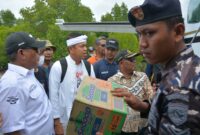 Proses pemindahan bahan makanan dari KRI di pelabuhan Kuala Langsa ke mobil angkutan untuk distribusi ke titik posko Gampong di Kota Langsa, (Foto :…