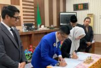 Walikota Langsa Jeffry Sentana S Putra dan Ketua DPRK Langsa Melvita Sari SAB lakukan penandatanganan saat Rapat Paripurna Pengesahan APBD 2026, (Foto : Istimewa)….