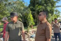 Wamendagri Bima Arya didampingi Walikota Langsa Jeffry Sentana S Putra tinjau pelaksanaan penangan lumpur dan sampah pasca bencana di Kota Langsa, (Foto : Humas…