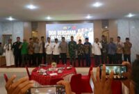 Wali Kota Langsa, Jeffry Sentana S Putra, berfoto bersama dengan FKUB, FKDM, FPM usai audensi, di ruang kerjanya, Kamis, 26 Juni 2025. (Foto :…