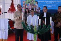 TLii|Sumut|Toba: Bupati Toba, Effendi Sintong Panangian Napitupulu didampingi Ketua TP PKK Kabupaten Toba, Ny. Astita Effendi Napitupulu dan Sekretaris Daerah, Augus Sitorus serta beberapa…