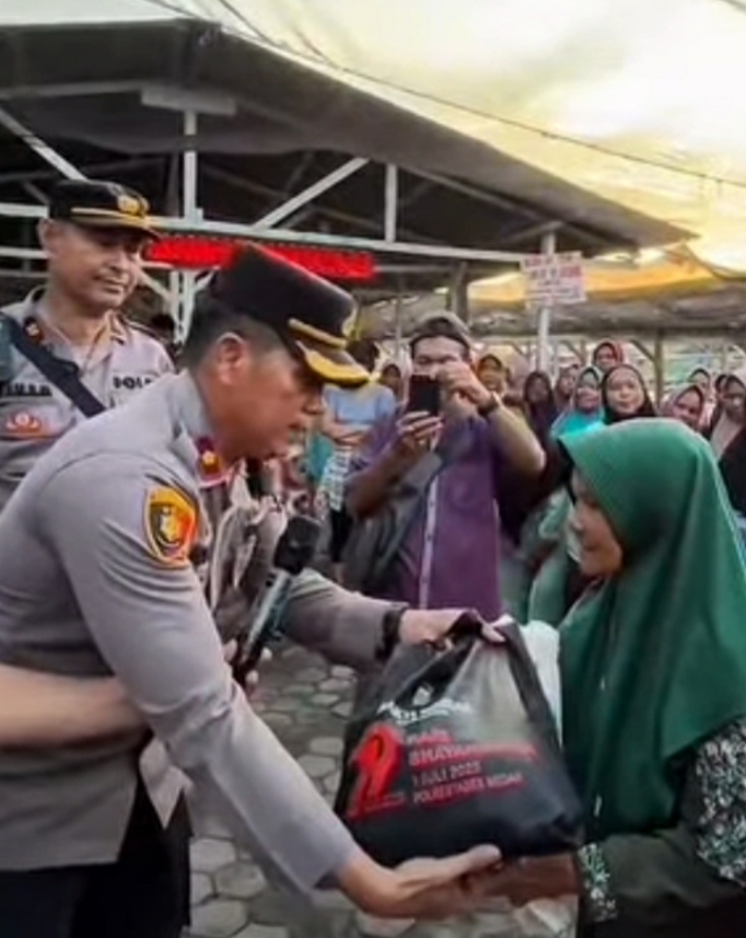 Dalam kegiatan ini juga tampak berbagai momen humanis, mulai dari antrean warga yang tertib, interaksi hangat antara petugas dengan masyarakat, hingga penyerahan sembako secara langsung oleh Kapolsek yang penuh rasa empati.