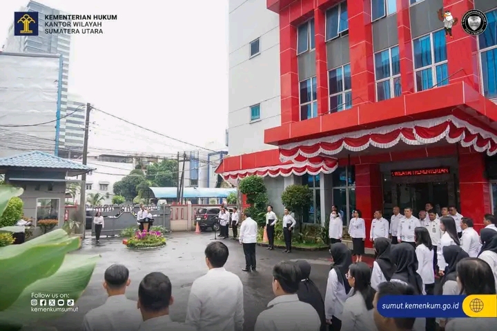 TIMELINES INEWS INVESTIGASI, Medan 01 Oktober 2025 Meski diguyur rintik hujan, semangat kebangsaan tidak surut dalam pelaksanaan Upacara Peringatan Hari Kesaktian Pancasila Tahun 2025. Seluruh pegawai dari tiga Kantor Wilayah, yakni Kanwil Kementerian Hukum Sumatera Utara, Kanwil Ditjen Imigrasi Sumatera Utara, serta Kanwil Kementerian HAM Sumatera Utara, mengikuti upacara dengan khidmat di halaman Kanwil Kemenkum Sumatera Utara, Rabu (01/10/2025).