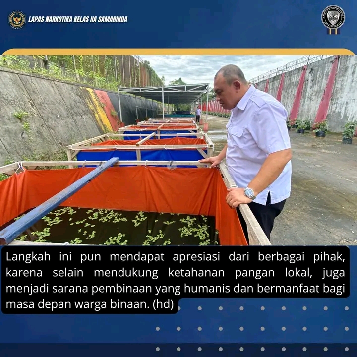 TIMELINES INEWS INVESTIGASI Samarinda, Dalam upaya mendukung program ketahanan pangan Nasional, Kepala Lembaga Pemasyarakatan (Kalapas) Narkotika Kelas IIA Samarinda, Theo Adrianus melakukan peninjauan langsung ke area Sarana Asimilasi dan Edukasi (SAE) ketahanan pangan yang berada di lingkungan lapas, Rabu (23/4)