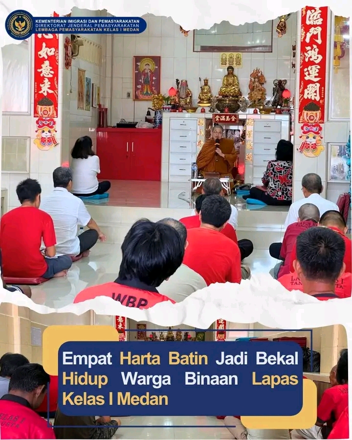 TIMELINES INEWS INVESTIGASI, Medan Lapas Kls I Medan 14 Juni 2025 Dalam rangka mendukung program pembinaan kepribadian warga binaan, Lembaga Pemasyarakatan (Lapas) Kelas I Medan menyelenggarakan kegiatan pembinaan spiritual bagi warga binaan pemeluk agama Buddha, Sabtu (14/6). Kegiatan yang berlangsung di rumah ibadah dalam lingkungan Lapas ini dipimpin langsung oleh Bhikkhuni Ayya Sati dari Yayasan Sangha Bodhiphakkhia Nusantara.