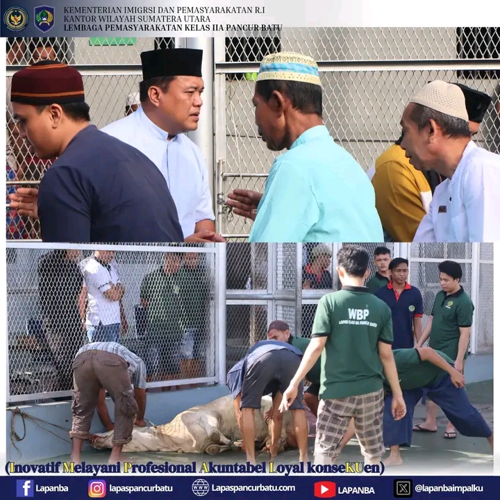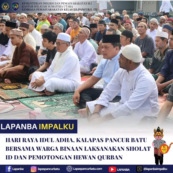 TIMELINES INEWS INVESTIGASI, Pancur Batu Suasana penuh kehangatan Hari Raya Idul Adha turut dirayakan oleh warga binaan Lembaga Pemasyarakatan (Lapas) Kelas IIA Pancur Batu dengan melaksanakan sholat id dan dilanjutkan dengan pemotongan hewan qurban, Jumat (6/6/25)