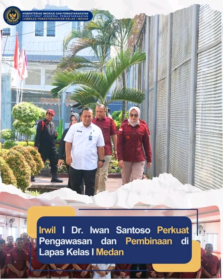 TIMELINES INEWS INVESTIGASI, Medan, Inspektur Wilayah I (Irwil I) Kementerian Imigrasi dan Pemasyarakatan, Dr. Iwan Santoso, melakukan kunjungan kerja ke Lembaga Pemasyarakatan (Lapas) Kelas I Medan pada hari Kamis, 19 Juni 2025. Kunjungan ini didampingi langsung oleh Kepala Lapas Kelas I Medan, Herry Suhasmin, beserta jajaran.