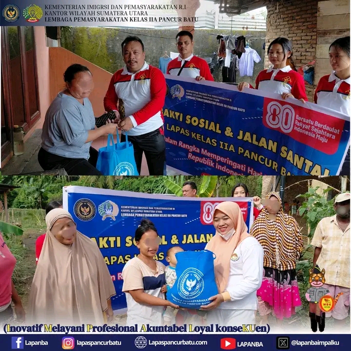 TIMELINES INEWS INVESTIGASI, Lapas Pancur Batu Menyambut Hari Ulang Tahun (HUT) Kemerdekaan Republik Indonesia ke-80, Lapas Kelas IIA Pancur Batu, Kantor Wilayah Direktorat Jenderal Pemasyarakatan (Kanwil Ditjenpas) Sumatera Utara melaksanakan kegiatan Jalan Santai Bersama seluruh jajaran Lapas Pancur Batu sekaligus menunjukkan kepeduliannya kepada masyarakat sekitar dengan membagikan paket sembako secara door to door kepada warga masyarakat sekitar Lapas yang membutuhkan. Kegiatan dimulai dengan pemanasan dan berjalan menuju rute yang telah ditentukan. Jumat (15/8), Kegiatan dihadiri oleh seluruh jajaran pegawai Lapas Pancur Batu.