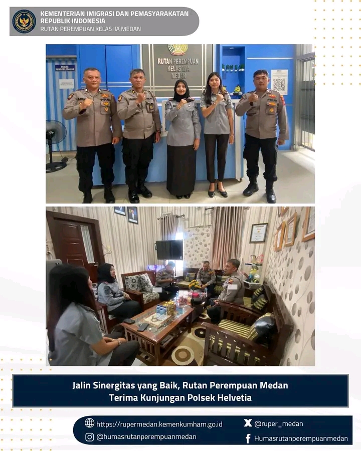 Kepolisian Sektor Medan Helvetia juga menyambut baik kerja sama ini dan menyatakan komitmennya untuk terus bersinergi dalam menjaga keamanan, baik di dalam Rutan maupun di lingkungan sekitar, serta mendukung proses rehabilitasi dan pembinaan yang dilaksanakan di Rutan Perempuan Medan.