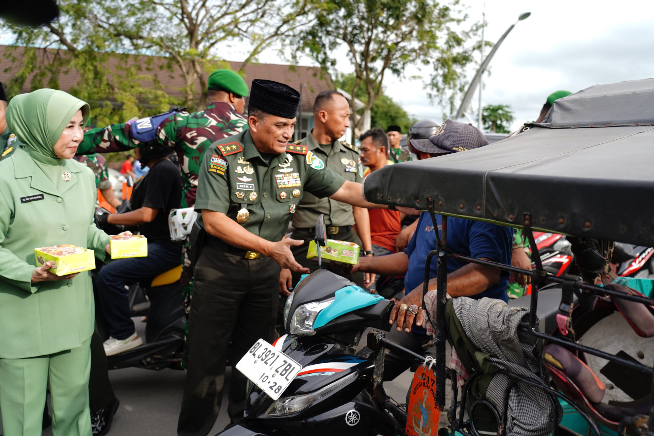 Panglima Komando Daerah Militer Iskandar Muda (Pangdam IM), Mayor Jenderal TNI Niko Fahrizal, M.Tr. (Han), Ketua Persit KCK Daerah IM beserta PJU Kodam IM turut hadir secara langsung dalam kegiatan ini dengan ikut seta membagikan takjil kepada masyarakat di sekitar Makodam Iskandar Muda, Kota Banda Aceh, pada Jumat (14/3/2025).