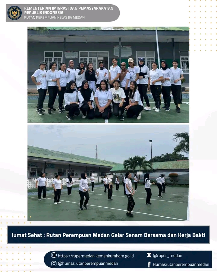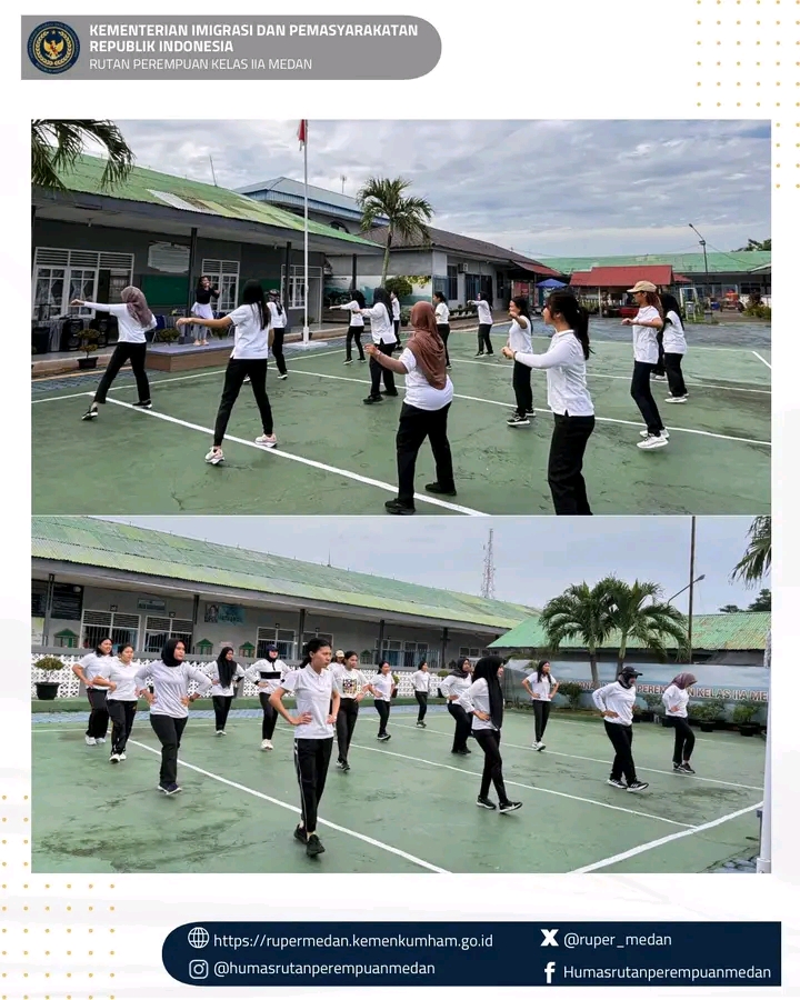 TIMELINES INEWS INVESTIGASI, Medan Rutan Perempuan Kelas II A Medan menggelar kegiatan Jumat sehat pada (20/06/2025). Kegiatan yang dilaksanakan pada Jumat pagi ini mengkombinasikan aktivitas fisik dengan aksi sosial berupa senam pagi dan kerja bakti membersihkan lingkungan Rutan Perempuan Medan.