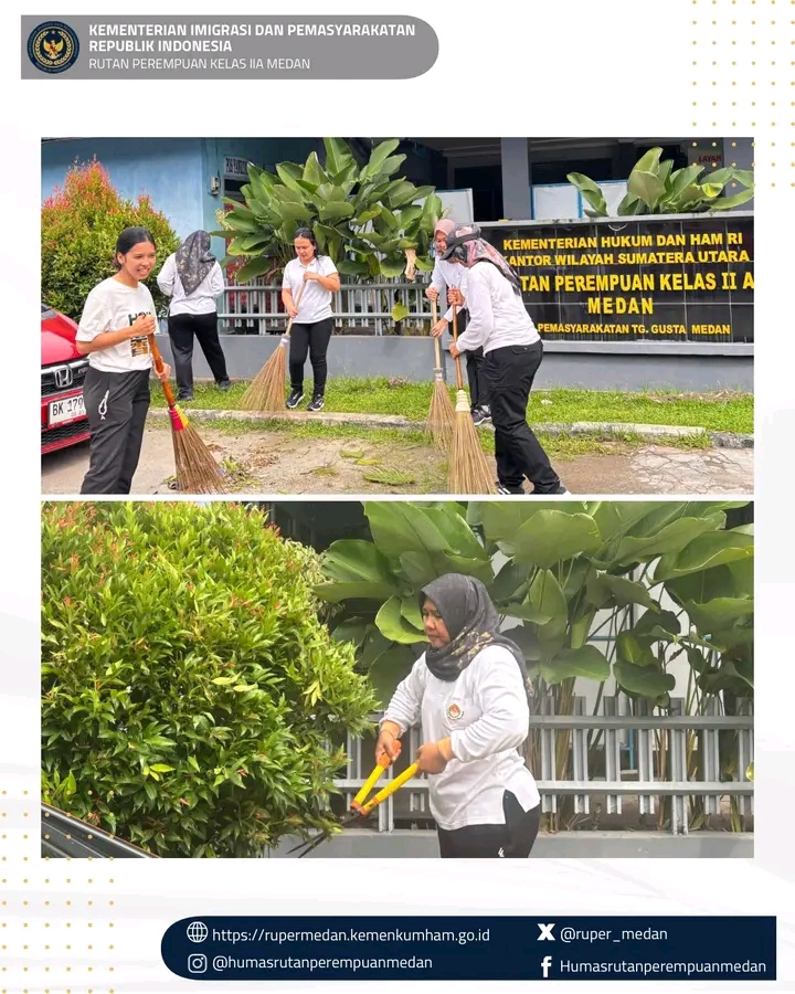 Setelah senam pagi, kegiatan dilanjutkan dengan kerja bakti membersihkan area sekitar lingkungan Rutan Perempuan Medan dengan tujuan untuk menjaga kebersihan lingkungan serta meningkatkan kesadaran akan pentingnya menjaga kebersihan sebagai bagian dari tanggung jawab bersama, Jelasnya.