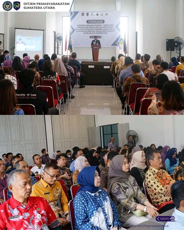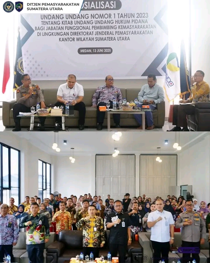 TIMELINES INEWS INVESTIGASI, Medan, 13 Juni 2025 Kepala Kantor Wilayah Direktorat Jenderal Pemasyarakatan (Ditjenpas) Sumatera Utara, Yudi Suseno, membuka secara resmi kegiatan Sosialisasi Undang-Undang Nomor 1 Tahun 2023 tentang Kitab Undang-Undang Hukum Pidana (KUHP) yang digelar di Balai Pemasyarakatan (Bapas) Kelas I Medan, Jumat (13/6/25)
