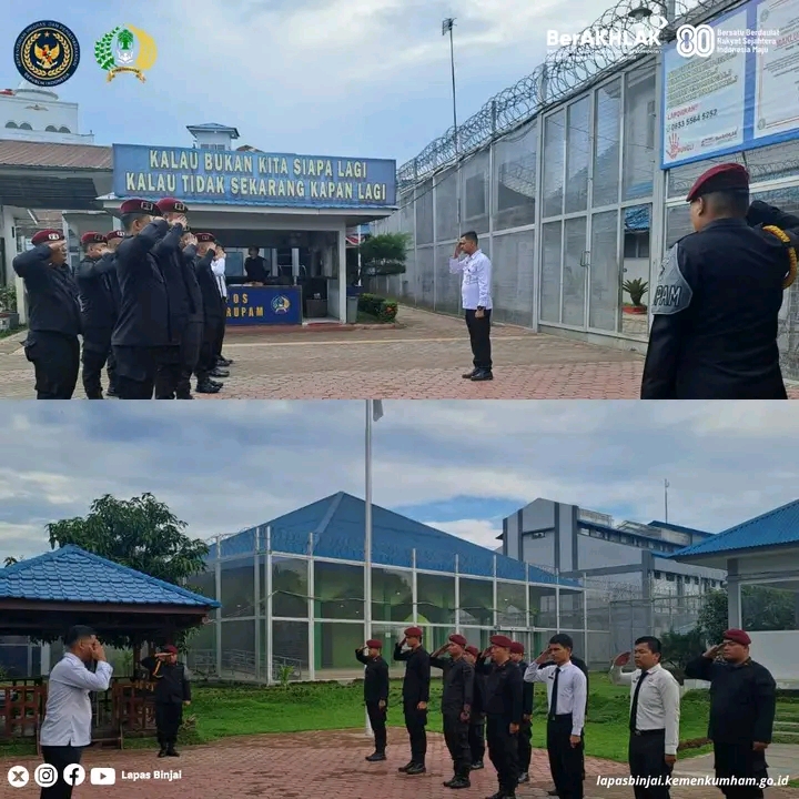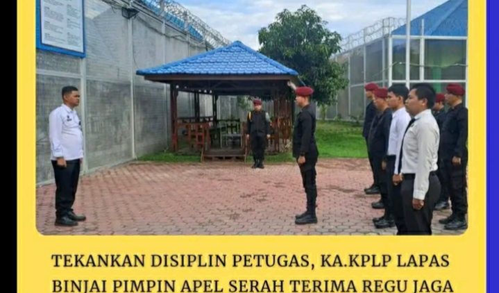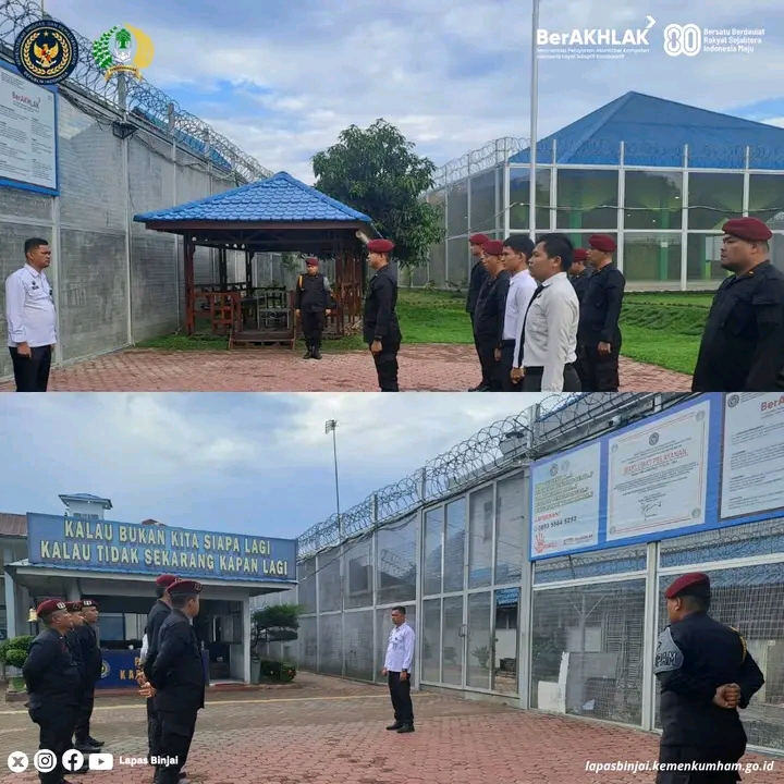 TIMELINES INEWS INVESTIGASI, Binjai, 02 Oktober 2025 Kepala Kesatuan Pengamanan Lapas (Ka.KPLP) Lapas Kelas IIA Binjai, Rudi Sembiring, memimpin Apel Regu Jaga di lapangan Lapas. Kegiatan ini digelar untuk meningkatkan kedisiplinan, integritas, serta kesiapan petugas jaga dalam menghadapi situasi darurat.