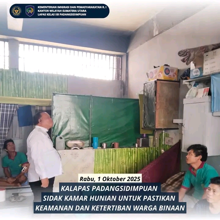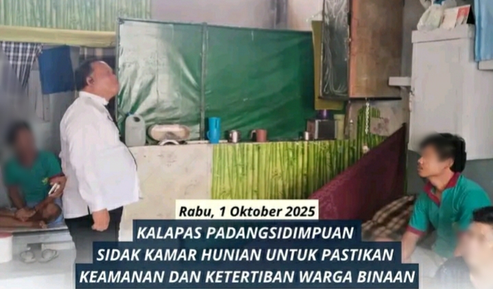 TIMELINES INEWS INVESTIGASI, Padangsidimpuan, Kepala Lembaga Pemasyarakatan (Kalapas) Kelas IIB Padangsidimpuan, Mathrios Zulhidayat Hutasoit, inspeksi mendadak (sidak) ke kamar hunian warga binaan, Rabu (01/10/2025). Sidak ini dilaksanakan sebagai tindak lanjut instruksi dari Direktur Jenderal Pemasyarakatan untuk memperkuat pengawasan di lapas dan menekan peredaran barang terlarang.