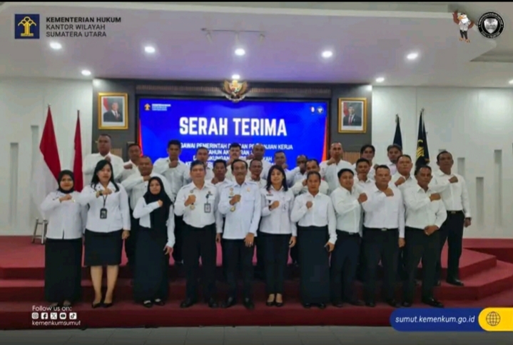 TIMELINES INEWS INVESTIGASI, Medan Kantor Wilayah Kementerian Hukum Sumatera Utara melaksanakan kegiatan Serah Terima Pegawai Pemerintah dengan Perjanjian Kerja (PPPK) Tahun Anggaran 2024 yang berlangsung di Aula Soepomo Lt. V. Kegiatan ini menjadi momentum penting bagi peningkatan kualitas pelayanan publik di jajaran Kementerian Hukum, Rabu (1/10/2025).