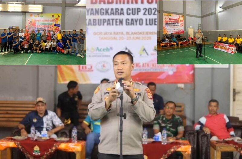 TLii | ACEH | Blangkejeren – Dalam rangka menyemarakkan Hari Bhayangkara ke-79, Polres Gayo Lues menggelar Turnamen Badminton Bhayangkara Cup tingkat kabupaten yang resmi dibuka oleh Kapolres Gayo Lues AKBP Hyrowo, S.I.K., Kegiatan bertempat di Gedung Olahraga (GOR) Gayo Lues, Kecamatan Blangkejeren, Kabupaten Gayo Lues, Jum’at, 20 Juni 2025.