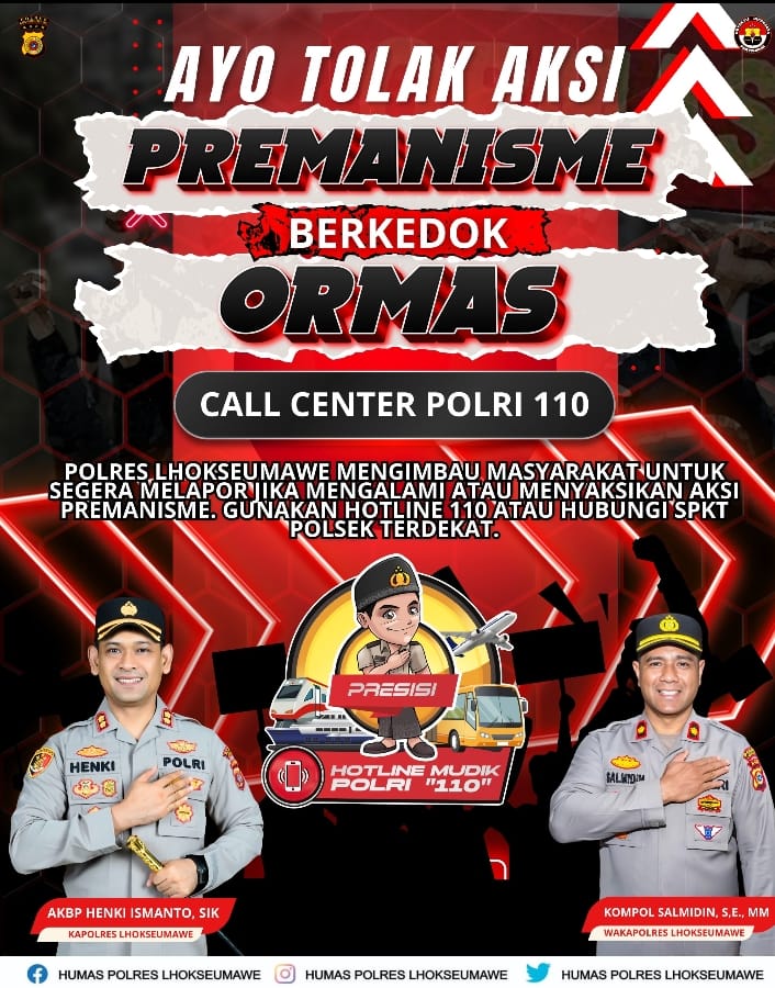 Kapolres menjelaskan bahwa Polres Lhokseumawe mengedepankan langkah preventif dan preemtif dalam menangani kasus-kasus premanisme. Pihaknya aktif melakukan sosialisasi, pembinaan, serta koordinasi dengan berbagai pihak guna meningkatkan kesadaran masyarakat dan pelaku usaha agar lebih waspada terhadap modus pemerasan berkedok ormas.