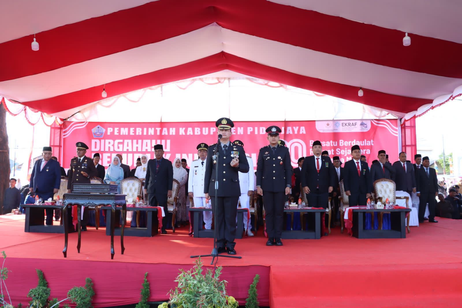 Kehadiran jajaran Forkopimda Pidie Jaya menambah khidmat suasana, di antaranya Bupati Pidie Jaya H. Sibral Malasyi, MA, S.Sos., ME, Wakil Bupati, Hasan Basri, ST, MM, Dandim 0102/Pidie Letkol Inf. Andi Irsan, M.Han, Kajari Pidie Jaya Hedi Muchwanto, S.H., M.H., Ketua DPRK Akadir Jailani, serta unsur TNI-Polri, ASN, dan Pramuka yang berbaris tegap dalam formasi pasukan upacara.