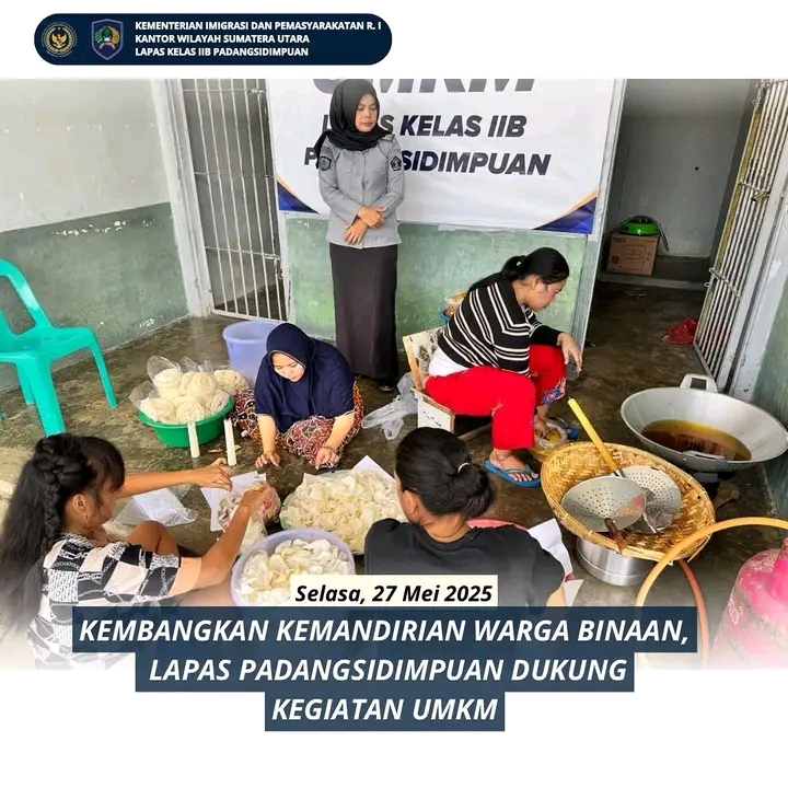 TIMELINES INEWS INVESTIGASI      Padangsidimpuan Dalam upaya memberdayakan warga binaan dan membekali mereka dengan keterampilan kewirausahaan, Lembaga Pemasyarakatan Kelas IIB Padangsidimpuan menggelar kegiatan Usaha Mikro, Kecil, dan Menengah (UMKM) yang melibatkan langsung para penghuni lapas khususnya warga binaan wanita. Kegiatan ini menjadi bagian dari program pembinaan kemandirian yang digagas oleh Direktorat Jenderal Pemasyarakatan Kementerian Imigrasi dan Pemasyarakata, Selasa (27/05/2025).