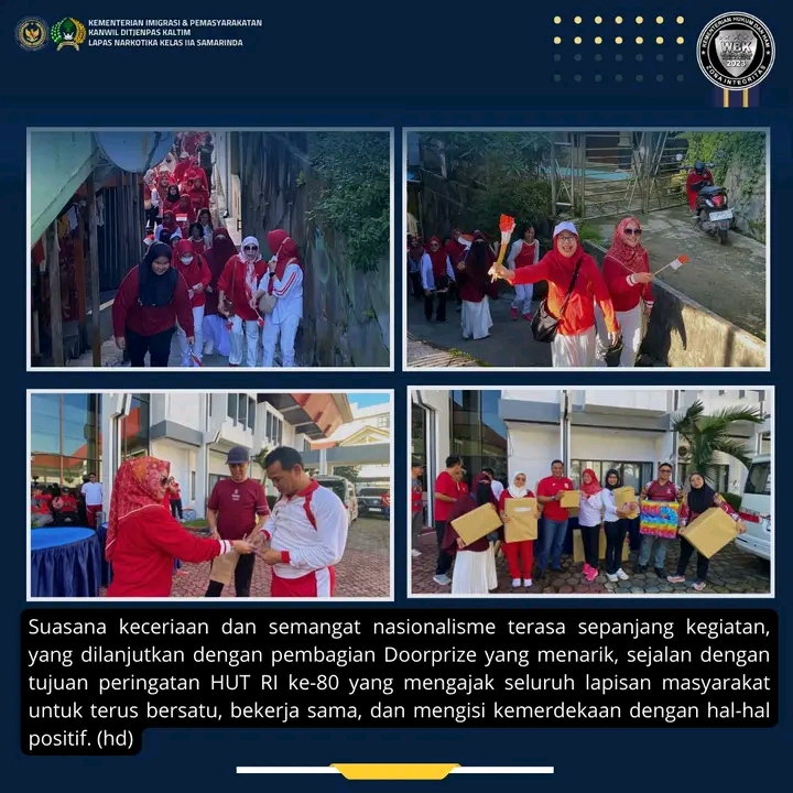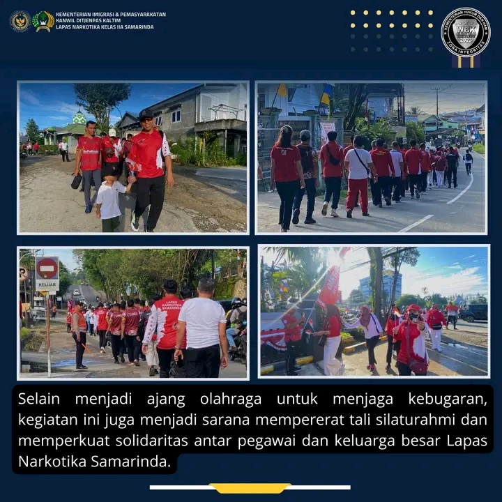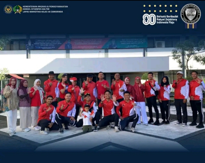 TIMELINES INEWS INVESTIGASI, Samarinda, Dalam rangka memeriahkan Hari Ulang Tahun Kemerdekaan Republik Indonesia ke-80, Kepala Lapas Narkotika Samarinda beserta jajaran dan Dharma Wanita Persatuan turut berpartisipasi dalam kegiatan Fun Walk yang berlangsung meriah. Jumat (15/8)