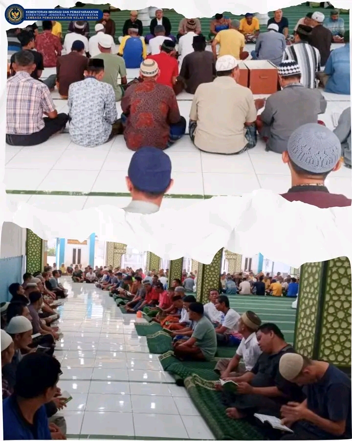 TIMELINES INEWS INVESTIGASI  Medan, Sebagai bagian dari komitmen pembinaan kepribadian, Lembaga Pemasyarakatan (Lapas) Kelas I Medan secara rutin melaksanakan kegiatan Yasinan setiap hari Jumat pagi di Masjid At-Taubah dalam lingkungan Lapas. Kegiatan ini diikuti oleh warga binaan pemasyarakatan (WBP) yang beragama Islam dan dipandu oleh petugas rohani (24/5)