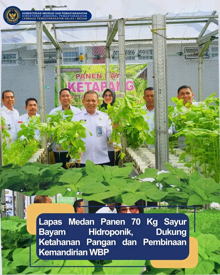 TIMELINES INEWS INVESTIGASI, Medan, Lembaga Pemasyarakatan (Lapas) Kelas I Medan kembali menegaskan komitmennya dalam mendukung ketahanan pangan dan pembinaan kemandirian Warga Binaan Pemasyarakatan (WBP) melalui program pertanian hidroponik. Pada Rabu pagi, 28 Mei 2025, Lapas Kelas I Medan melaksanakan panen bayam hidroponik dengan total hasil mencapai 70 kilogram.