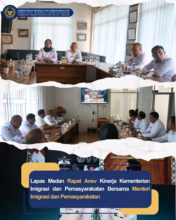 TIMELINES INEWS INVESTIGASI Medan, Lembaga Pemasyarakatan (Lapas) Kelas I Medan mengikuti Rapat Analisis dan Evaluasi (Anev) Kinerja Kementerian Imigrasi dan Pemasyarakatan yang diselenggarakan secara virtual pada Rabu, 7 Mei 2025. Kegiatan ini dipimpin langsung oleh Menteri Imigrasi dan Pemasyarakatan, Jenderal Polisi (Purn.) Drs. Agus Andrianto, S.H., M.H.