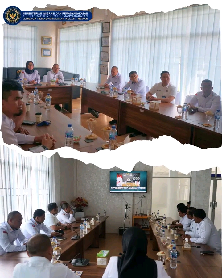 Dari Lapas Kelas I Medan, kegiatan ini diikuti langsung oleh Kepala Lapas Kelas I Medan, Herry Suhasmin, didampingi Pejabat Struktural Eselon III dan IV. Seluruh peserta mengikuti rapat dengan penuh keseriusan dari ruang kerja Kalapas.