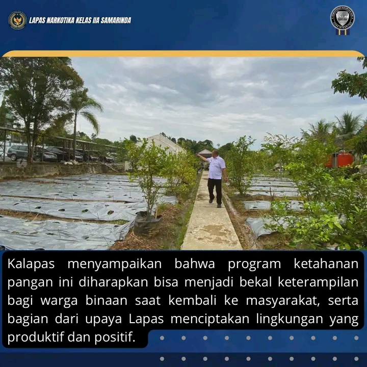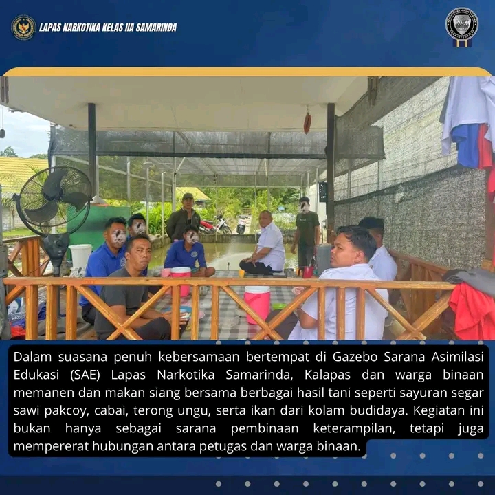 TIMELINES INEWS INVESTIGASI, Lapas Narkotika Samarinda 23 April 2025 Lembaga Pemasyarakatan (Lapas) Narkotika Kelas IIA Samarinda terus menunjukkan komitmennya dalam mendukung program pembinaan dan kemandirian warga binaan. Bertempat di Gazebo Sarana Asimilasi dan Edukasi (SAE), Kalapas Narkotika Samarinda, Theo Adrianus, memimpin kegiatan panen raya hasil program ketahanan pangan yang melibatkan warga binaan secara aktif.