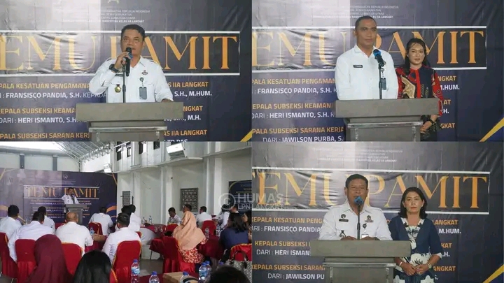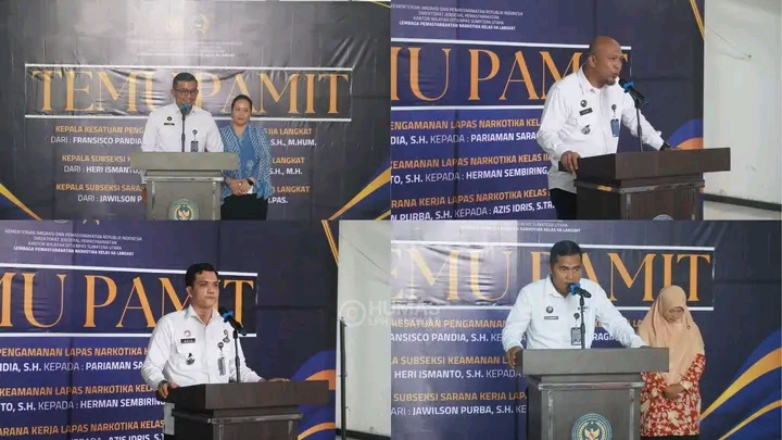Kepala Lapas Narkotika Langkat, Tapianus Antonio Barus, dalam sambutannya menyampaikan ucapan selamat kepada pejabat yang dilantik dan yang akan menempati posisi baru. Beliau juga mengingatkan untuk selalu menjaga silaturahmi dan tetap menjalin hubungan baik dengan Lapas Narkotika Langkat.