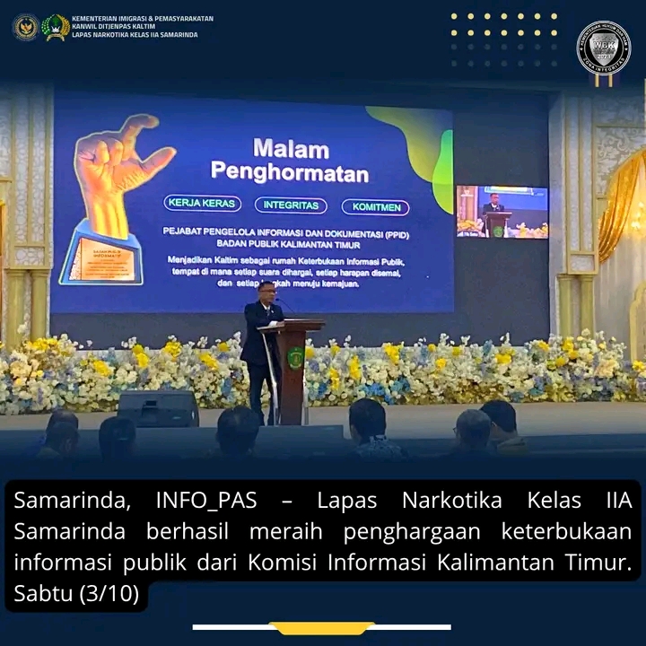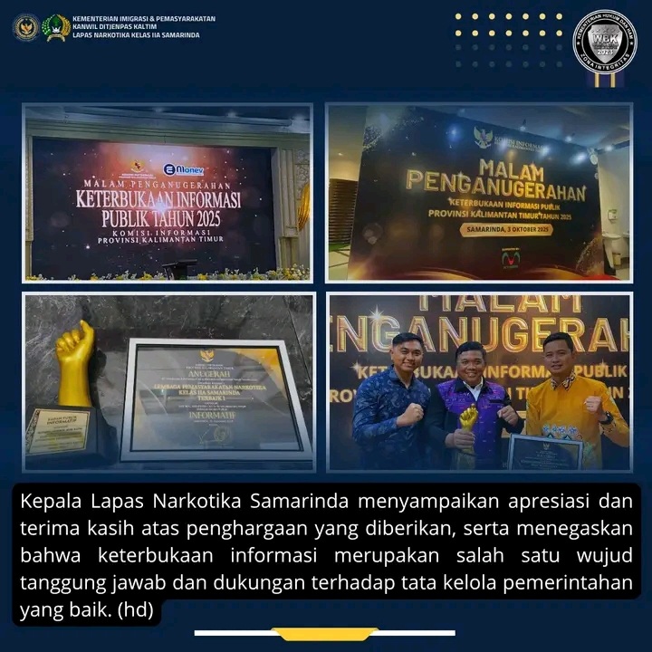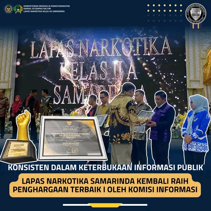 TIMELINES INEWS INVESTIGASI, Samarinda, 3 Oktober 2025 Lembaga Pemasyarakatan (Lapas) Narkotika Kelas IIA Samarinda kembali mengukir prestasi dengan meraih penghargaan Terbaik I Keterbukaan Informasi Publik dari Komisi Informasi Kalimantan Timur.