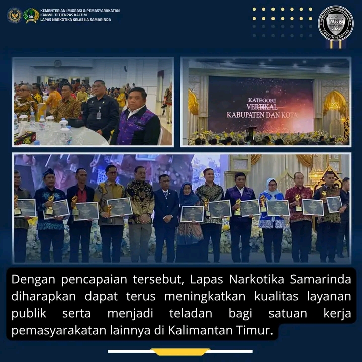 Dengan capaian ini, Lapas Narkotika Samarinda diharapkan dapat terus menjadi teladan bagi satuan kerja pemasyarakatan lainnya di Kalimantan Timur, serta memberikan pelayanan terbaik bagi warga binaan dan masyarakat lua, Pungkasnya.