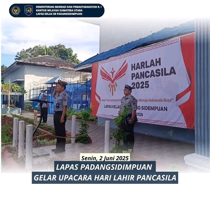 TIMELINES INEWS INVESTIGASI Padangsidimpuan Bertempat di lapangan utama, Lapas Kelas IIB Padangsidimpuan melaksanakan upacara peringatan Hari Lahir Pancasila pada Senin, 2 Juni 2025. Upacara berlangsung dengan khidmat dan penuh semangat kebangsaan, diikuti oleh seluruh petugas dan Warga Binaan Pemasyarakatan (WBP).