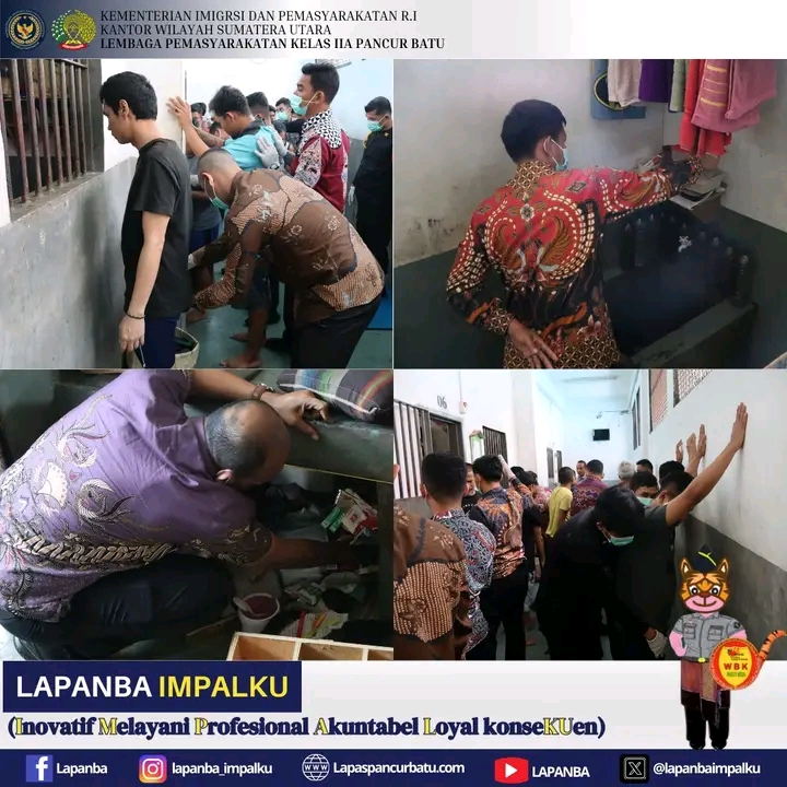 TIMELINES INEWS INVESTIGASI, Lapas Pancur Batu Tingkatkan Kewaspadaan terhadap Ganggungan Keamanan dan Ketertiban. Kepala Lapas Kelas IIA Pancur Batu,Tribowo. A.Md.IP.S.Sos.M.Si bersama Kepala Kesatuan Pengamanan Lapas (Ka. KPLP), Kasi Adm Kamtib beserta staf dan regu jaga melaksanakan Razia Paviliun Hunian Warga Binaan Pemasyarakatan (WBP) yang ada di Paviliun Diponegoro pada siang hari, Kamis (20/02).