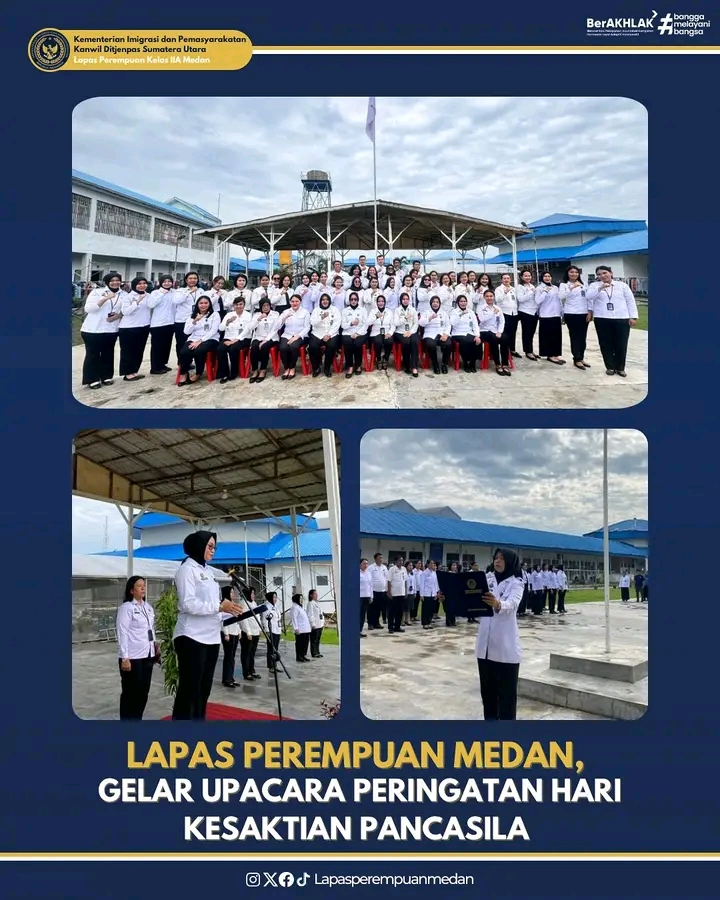 TIMELINES INEWS INVESTIGASI, Medan Lapas Perempuan Kelas IIA Medan melaksanakan upacara peringatan Hari Kesaktian Pancasila di lapangan upacara. Dengan mengusung tema “Pancasila Perekat Bangsa Menuju Indonesia Raya”, kegiatan ini berlangsung khidmat dan diikuti oleh seluruh jajaran petugas serta warga binaan, Selasa (01/10).