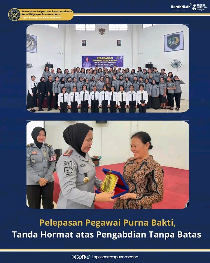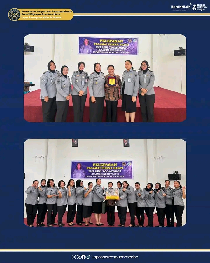 TIMELINES INEWS INVESTIGASI, Medan, 01 Juli 2025 Lembaga Pemasyarakatan (Lapas) Perempuan Kelas IIA Medan menggelar acara pelepasan pegawai purna bakti sebagai bentuk penghormatan atas dedikasi dan pengabdian selama tiga puluh lima tahun dalam melayani institusi dan masyarakat.