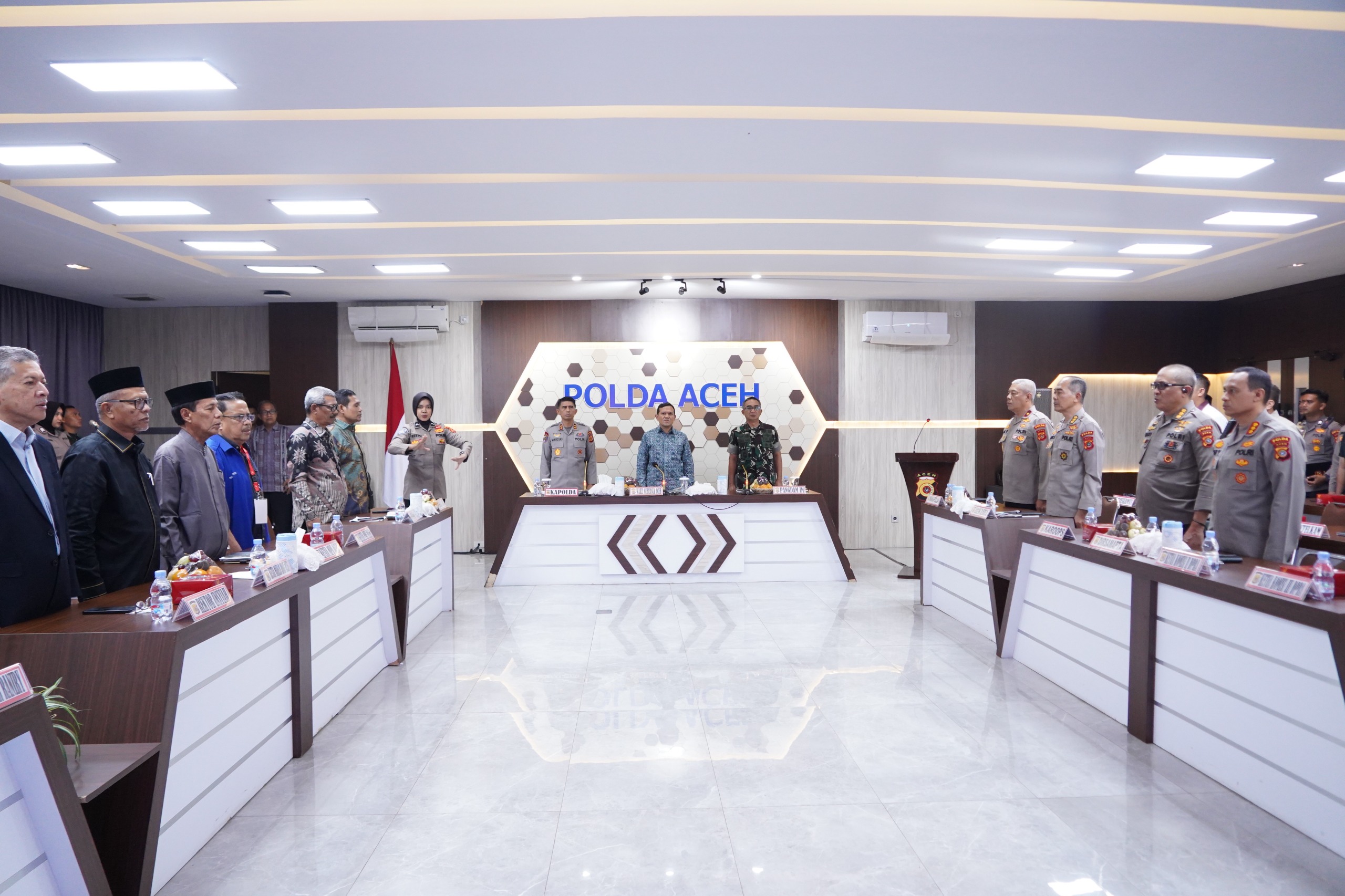 Turut hadir dalam kegiatan ini Rektor Universitas Syiah Kuala (USK) Prof. Dr. Ir. Marwan, Rektor Universitas Islam Negeri (UIN) Ar-Raniry Prof. Dr. Mujiburrahman, M.Ag., Wakapolda Aceh, para pejabat Forkopimda, tokoh ulama, serta pimpinan Satuan Kerja Perangkat Aceh (SKPA).