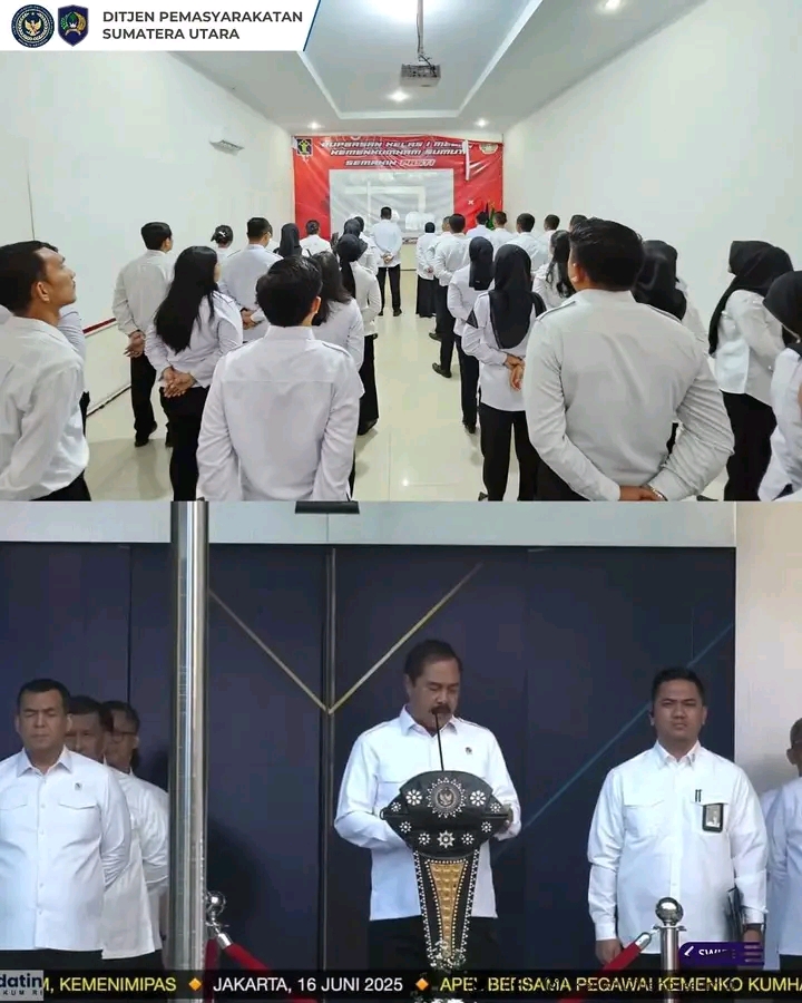 TIMELINES INEWS INVESTIGASI   Medan 16 Juni 2025 Dalam rangka memperkuat nilai-nilai profesionalisme, integritas, dan sinergi di kalangan aparatur sipil negara (ASN), Kementerian Koordinator Bidang Hukum, HAM, Imigrasi, dan Pemasyarakatan bersama Kementerian Hukum dan Hak Asasi Manusia (Kemenkumham), serta Kementerian Imigrasi dan Pemasyarakatan menyelenggarakan apel bersama secara virtual, Senin (16/06).