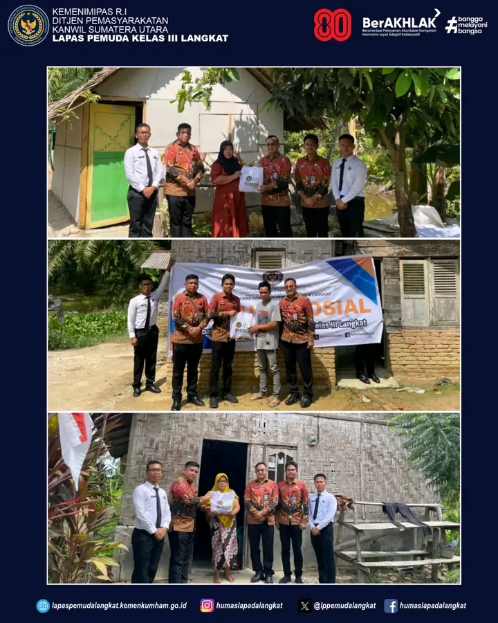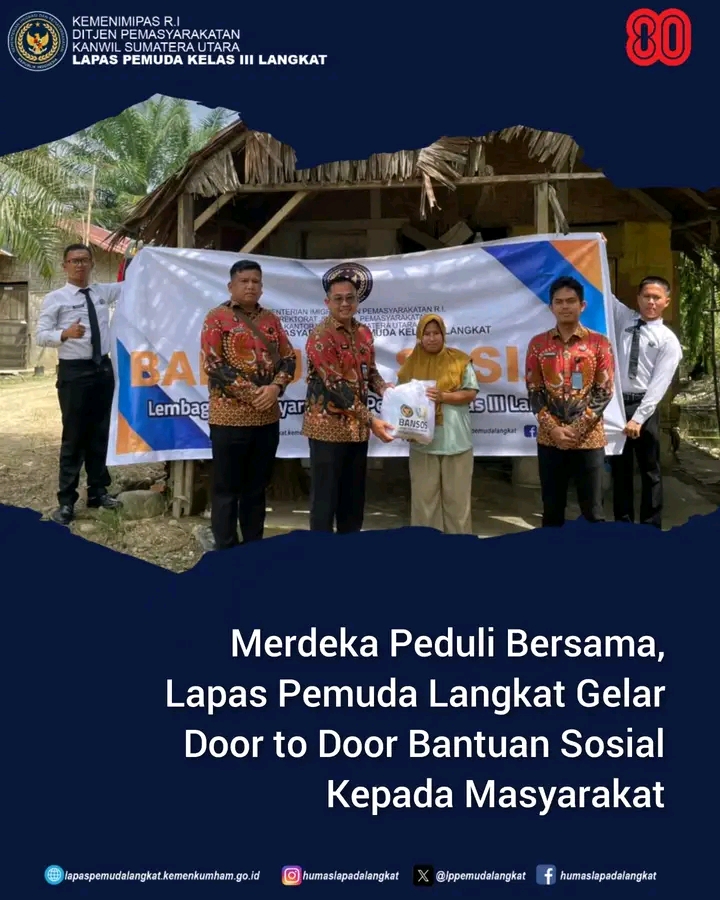 TIMELINES INEWS INVESTIGASI, Langkat Dalam rangka memeriahkan Hari Ulang Tahun (HUT) ke-80 Kemerdekaan Republik Indonesia, Lembaga Pemasyarakatan (Lapas) Pemuda Kelas III Langkat menggelar kegiatan pembagian bantuan sosial bertema “Merdeka Peduli Sesama” secara door to door kepada masyarakat sekitar yang kurang mampu, Jumat (15/08/2025).