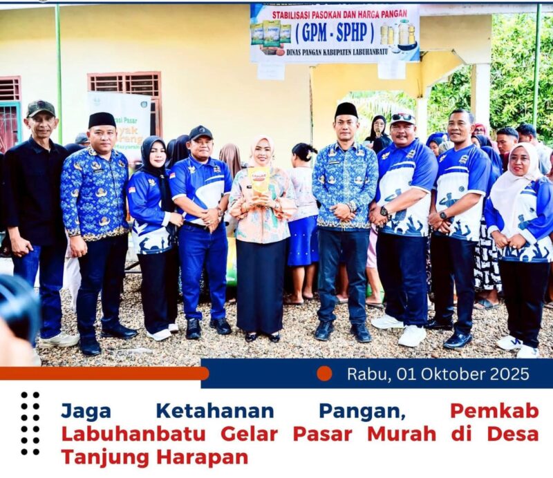 TLii | SUMUT | Labuhanbatu – Pemerintah Kabupaten Labuhanbatu menggelar Pasar Murah sebagai langkah strategis menjaga stabilitas harga sekaligus memastikan ketahanan pangan tetap terjaga, khususnya bagi masyarakat Desa Tanjung Harapan, Kecamatan Pangkatan, Rabu (01/10).