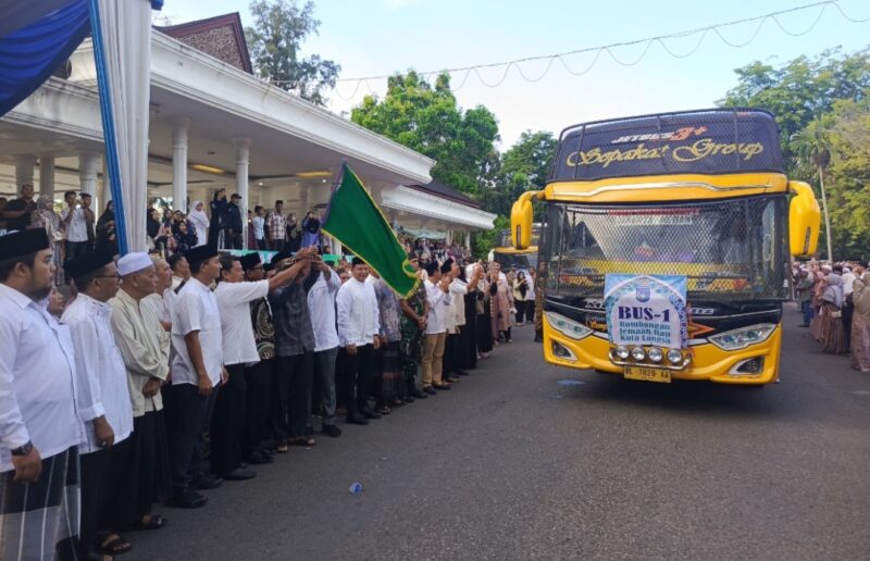 Kota Langsa – Pemerintah Kota (Pemko) Langsa lepas keberangkatan 186 Jamaah Haji Kota Langsa yang tergabung dalam Jamaah Haji Embarkasi Aceh Kloter 07 BTJ 1446 H/2025, Jum’at (23/05).