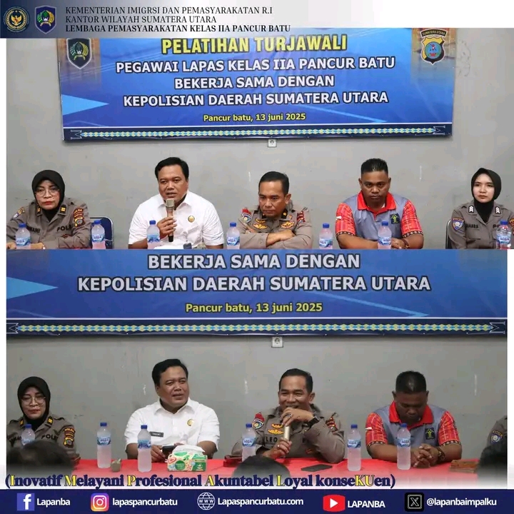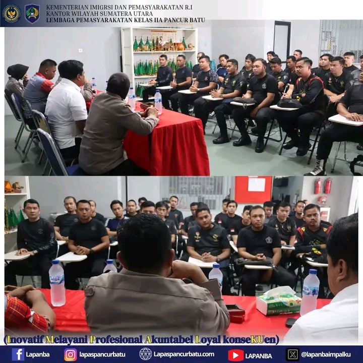 TIMELINES INEWS INVESTIGASI, Pancur Batu, 13 Juni 2025 Dalam rangka mewujudkan Lembaga Pemasyarakatan yang aman dan kondusif, Lapas Kelas IIA Pancur Batu menjalin kerja sama dengan Direktorat Pembinaan Masyarakat (Binmas) Kepolisian Daerah Sumatera Utara. Kegiatan ini berlangsung di Aula Saharjo Lantai 2 Gedung Teknis Lapas Kelas IIA Pancur Batu, Jumat (13/6/25)