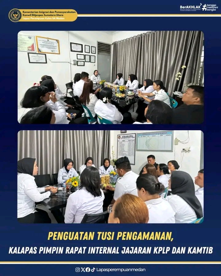 TIMELINES INEWS INVESTIGASI Medan Dalam rangka optimalisasu tugas dan fungsi, Lapas Perempuan Kelas IIA Medan melaksanakan rapat internal seksi Kesatuan Pengamanan Lembaga Pemasyarakatan dan seksi Administrasi Keamanan dan Ketertiban. Kamis (05/06/25)